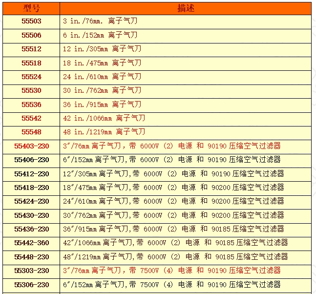 離子風(fēng)刀的型號(hào)和工作參數(shù)